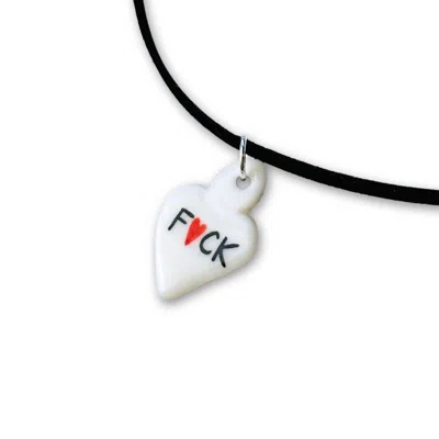 Women's White Sacred Heart Rebel Porcelain Choker Necklace - Sterling Silver