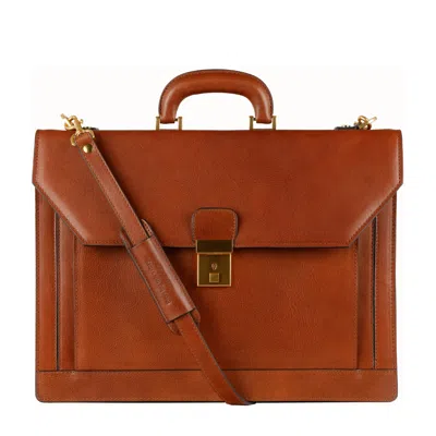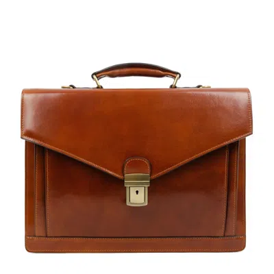 Men's Classic Design Leather Briefcase In Cognac Brown - The Magus