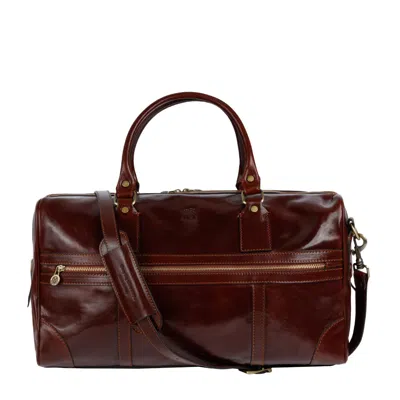 Cognac Brown Matte Leather Duffel Bag For Men - Tender Is The Night