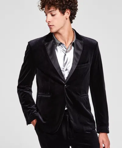 Men's Regular-fit Velvet Suit Jacket In Deep Black