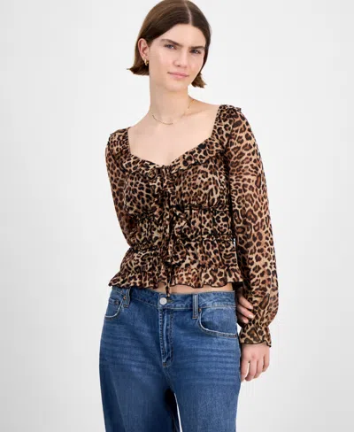 Juniors' Tie-back Ruffle Blouse In Animal Print