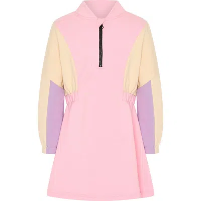 Kids' Colorblock Long Sleeve Cotton Graphic Sweatshirt Dress In Pink