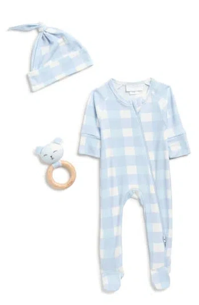 Babies' Gingham Layette, Beanie & Rattle Set In Blue