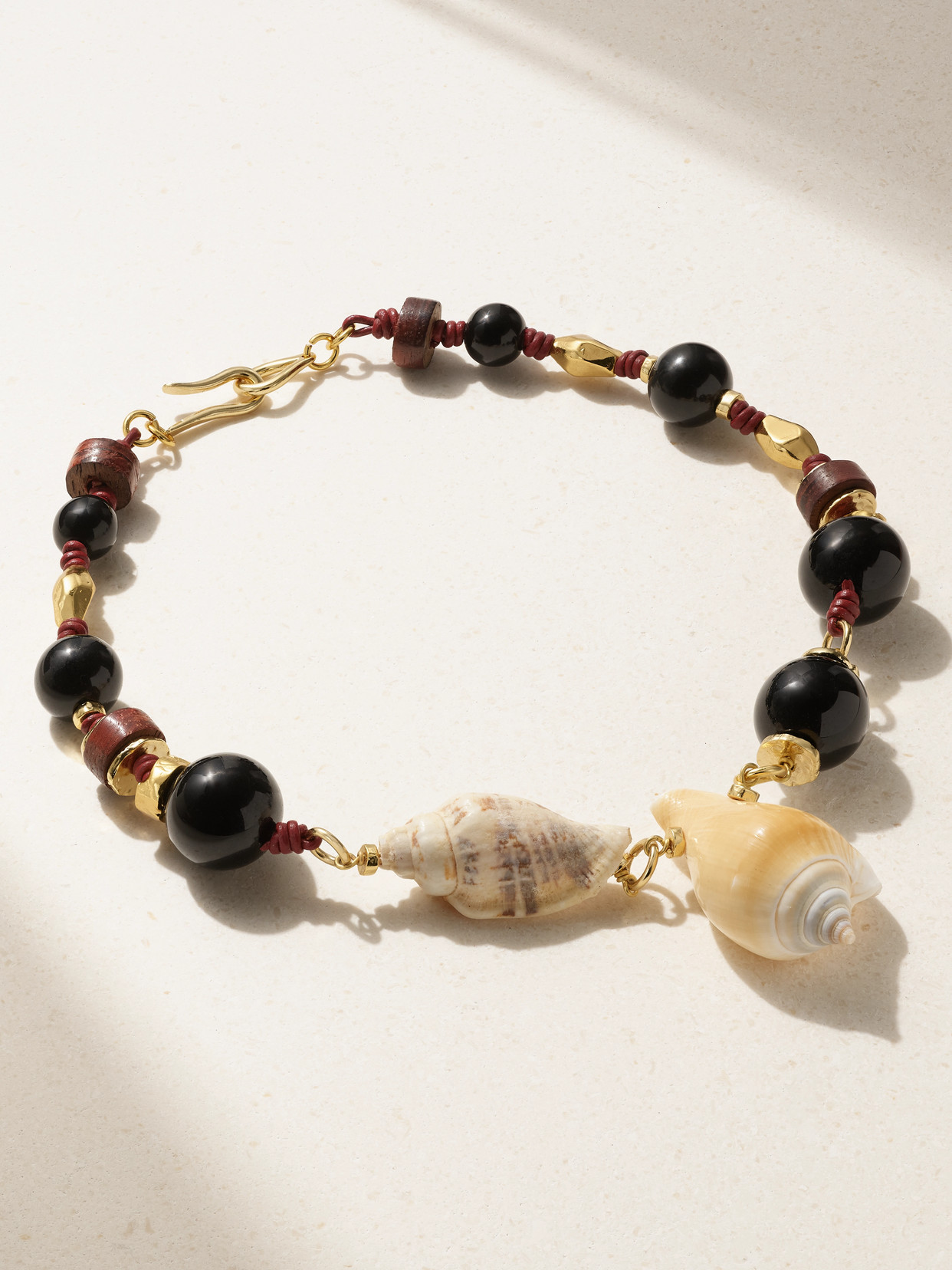 Samsara Gold-plated, Leather, Shell, Onyx And Recycled-glass Necklace In Brown