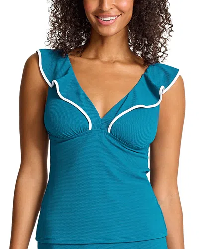 Island Cays Cabana Ruffle Trim Tankini In Blue