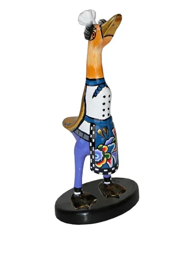 Chef-duck Sculpture (23cm X 12cm) In Blue