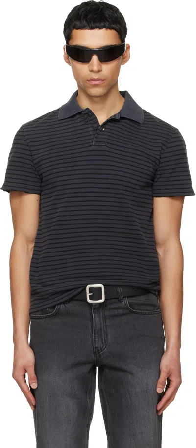 Brown Garment Dyed Stripe Pique Polo In Gray