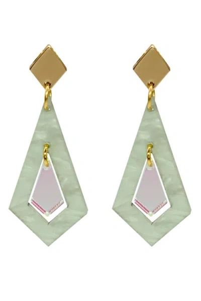 Women's Pink / Green Feather Drop Earrings - Pink Mirror & Lime Zest Green In Multi