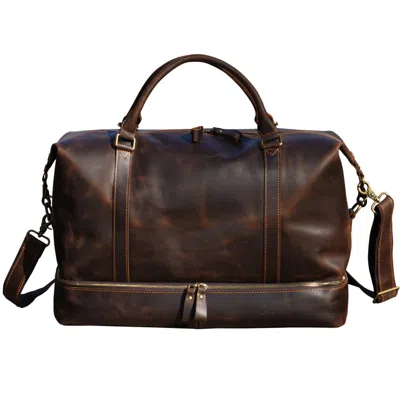 Men's Leather Weekend Bag With Shoe Storage In Dark Brown
