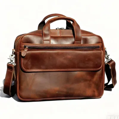 Brown Genuine Leather Briefcase With Multiple Pockets