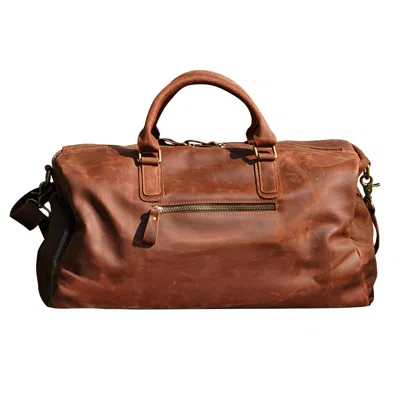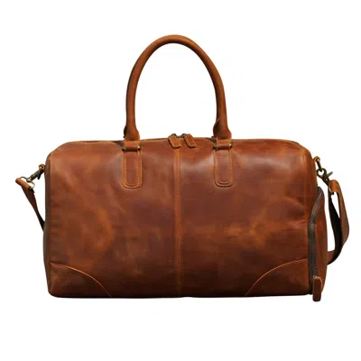 Genuine Leather Holdall Luggage Bag In Worn Brown