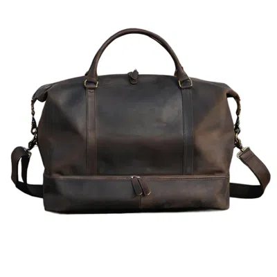 Men's Genuine Leather Duffel Travel Bag - Dark Brown