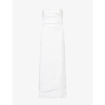 Petra One-shoulder Open-back Gathered Linen Top In White
