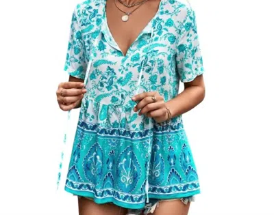 Bo Ho Floral Top In Blue