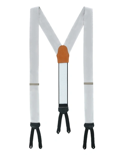 Dutton Solid Color Silk Button End Suspenders In White