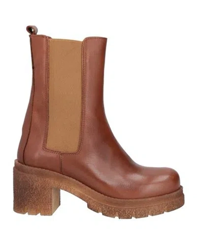 Woman Ankle Boots Tan Size 8 Calfskin In Brown