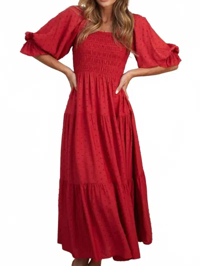 Smocked Swiss Dot Square Neck Dress - Plus In Scarlet In Red