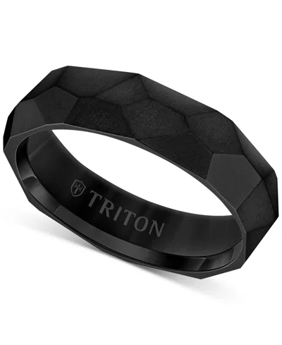 Men's Faceted Brush Finish Wedding Band In Titanium In Black
