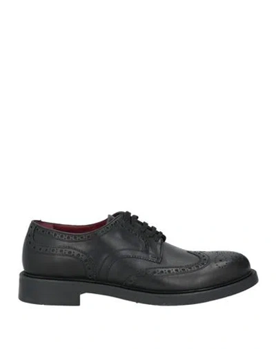 Man Lace-up Shoes Black Size 7 Leather In Multi