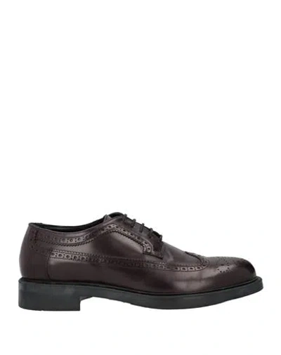 Man Lace-up Shoes Dark Brown Size 6 Leather In Black