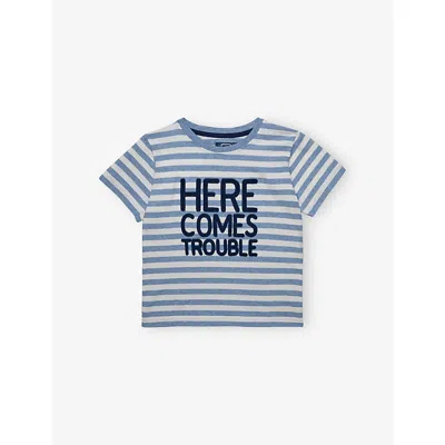 Kids' Pale Blue Stripe Here Comes Trouble Stripe Cotton-jersey T-shirt 2