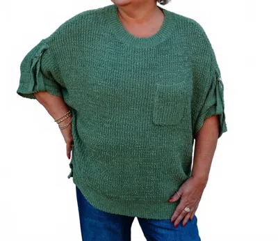 Roll Sleeve Crew Neck Sweater In Herb In Green
