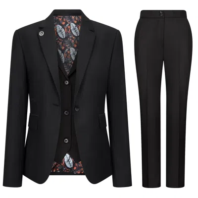 3 Piece Suit Plain Tailored Fit Business Formal Dress In Black