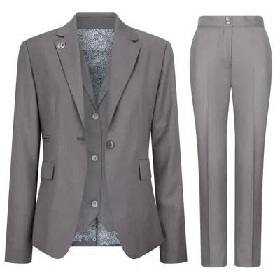 Tpw - Suit 3 Piece Prince Of Wales Check Tailored Fit Business Formal Ladies Dress In Gray