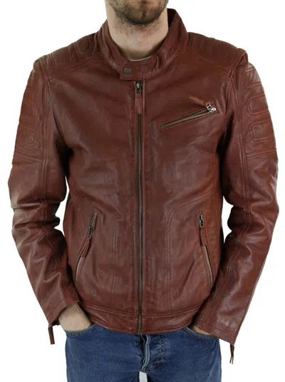 Cross Zip Biker Jacket Leather In Brown