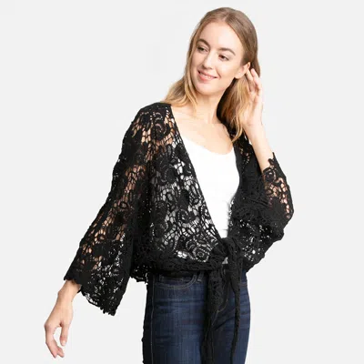 Floral Lace Poncho With Tassel In Black