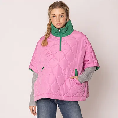 Quilted Short Sleeves Puffer Pullover Poncho In Pink