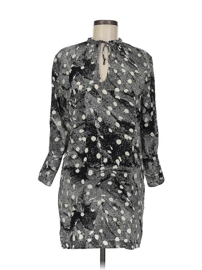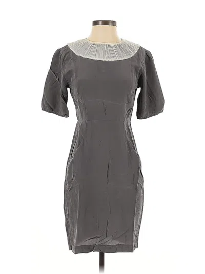 Pre-owned Short Sleeve Silk Top Gray Keyhole Neckline Tops