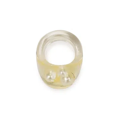 Handmade Resin Lagrima Resin & Pearl Ring - Clear In White