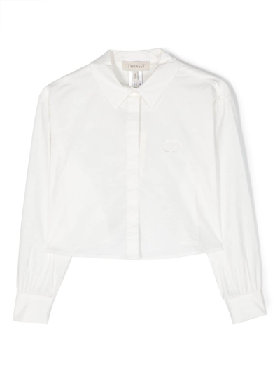 Kids' Logo-embroidered Long-sleeve Shirt In Lucent White