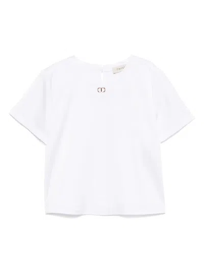 Kids' Chain-detail Wide-neck Sweatshirt In White