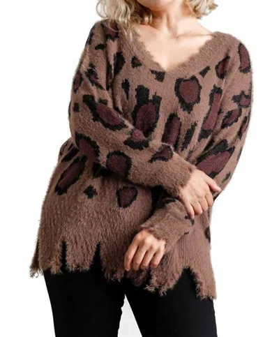 Fuzzy Leopard Sweater In Mocha In Brown