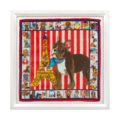 French Bulldog Framed Silk Scarf In Multi