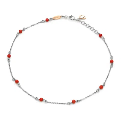 Men's Silver / Red Sterling Silver Chain Necklace With Natural Red Coral In Multi