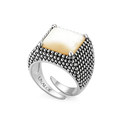 Silver / White Men's Adjustable Square Ring Sterling Silver With Mother Of Pearl In Multi