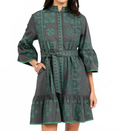 Cross Stitched Mini Dress In Grey In Green