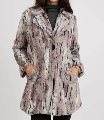 Faux Mountain Fox Coat In Pewter In Gray