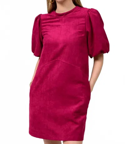 Puff Sleeve Suede Mini Dress In Magenta In Pink