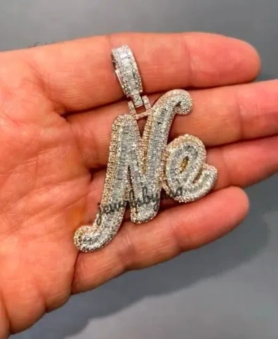 Pre-owned Customize Any 2 Letter Men's Baguette Simulated Diamond Rapper Pendant 925silver In White