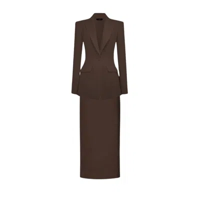 Brown Oversized Blazer & Midi Skirt - Matching Set, Mocha