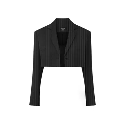 Women's Cropped Blazer - Black Pinstripe