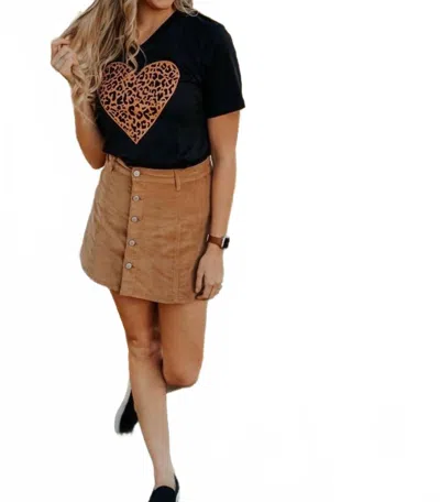 Leopard Heart Graphic Tee Shirt In Black