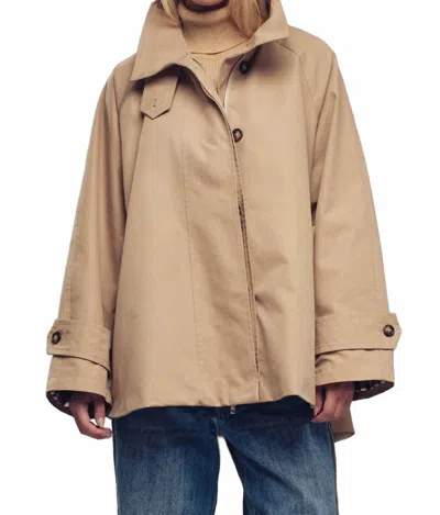 Checked Sherpa-lined Shacket In Terracotta In Beige