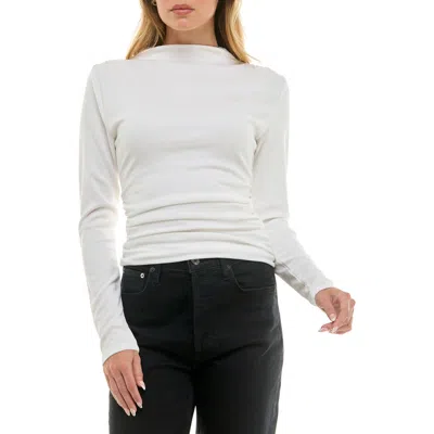 Long Sleeve Mock Neck Rib Knit Top In White