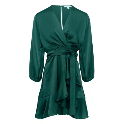 Women's Long Sleeve Wrap Front Dress Green In Brown