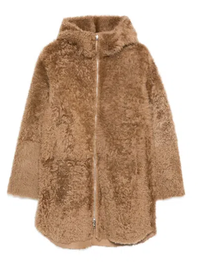 Joli Hooded Shearling Coat In Brown